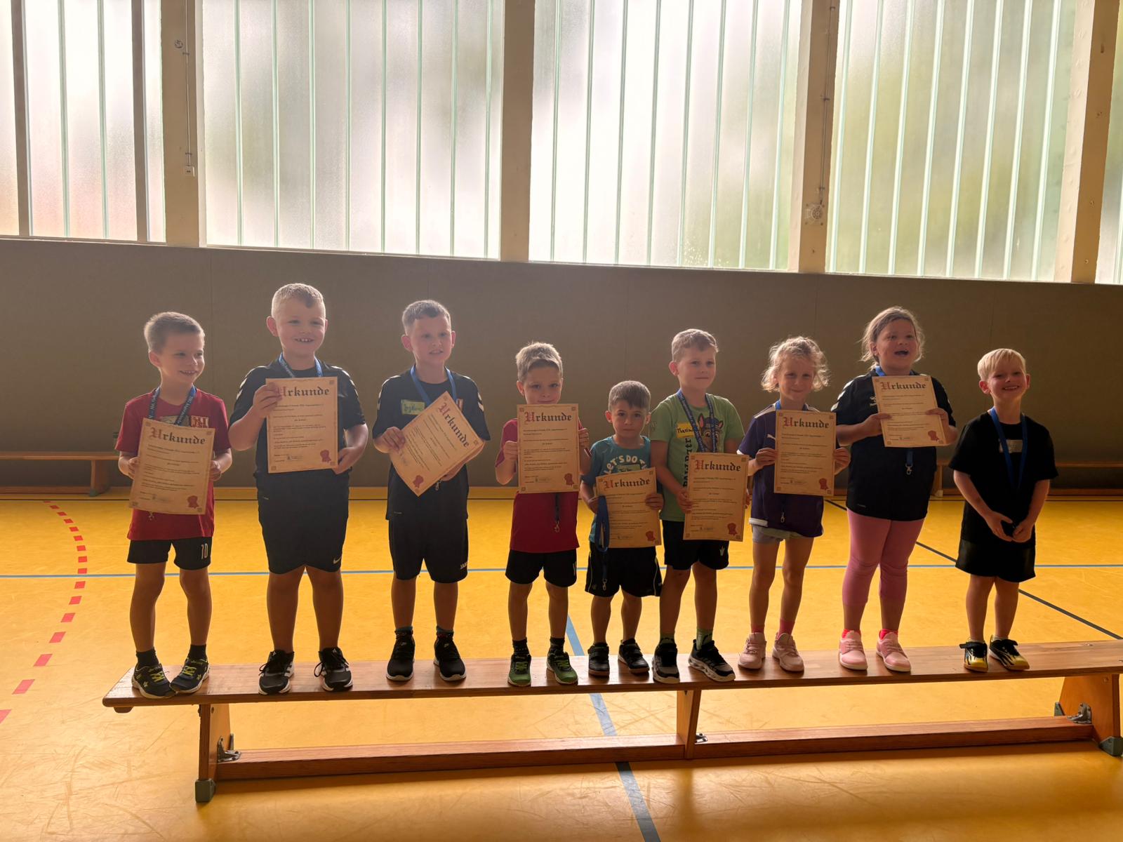 Am 10. September 2025 startete die jüngsten Kinderleichtathletikgruppen des TSG Angermünde e.V. in die neue Saison. Der Tag begann mit einem besonderen Moment: Die neuen Einschulungskinder wurden feierlich gewürdigt und erhielten eine Urkunde sowie ein Schlüsselband. Der Verein wünscht allen Erstklässlern viel Freude beim Lernen, Neugier beim Entdecken neuer Dinge und viele neue Freundschaften auf ihrem weiteren Weg.