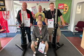 Mit vier Sportlern in der Altersklasse 1 bis 4 nahm die TSG Angermünde an den Landesmeisterschaften im Bankdrücken in Lauchhammer teil. Erster in der AK ! Gewichtsklasse bis 120kg war Thomas Hasse mit einer Leistung von 127,5kg im zweiten Versuch. Für die Norm von 132,5kg zur Teilnahme an der Deutschen Meisterschaft reichte es diesmal nicht. Senior Helmut Hasse Altersklasse 3 drückte souverän trotz Verletzung die 132,5kg und hat somit die Norm die in dieser AK bei 107,5kg lag geschafft. Auch die beiden Senioren Hubert Gramsch und Manfred Klockow beide Altersklasse IV schafften mit dem Hantelgewicht von 95kg und 102,5kg die geforderte Norm in der Gewichtsklasse bis 59kg und 83kg. Bei der Platzierung standen gleich drei mit Gold durch Helmut Hasse, Hubert Gramsch und Manfred Klockow auf dem Siegerpodest. Silber ging an Thomas Hasse. Somit ist der Weg frei für drei Sportler an der Deutschen Meisterschaft in Greifswald Ende Oktober.