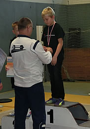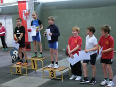 (Gewichtsklasse bis 45kg) in seinem erst zweiten Wettkampf durch 6,0 und 5,0 Technikpunkte im Reißen und Stoßen sowie 6,23m im Kugelschocken und 15,0 sek im Lauftest wofür es am Ende Silber gab. Teamkamerad Sebastian Kleinke und zugleich Kontrahent in der selben Gewichtsklasse verbesserte seine technischen Fertigkeiten im Reißen mit 4,5 Punkte und schaffte durch 15,7 sek im Lauftest Bronze.