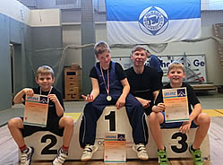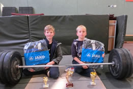 In der jüngsten Gruppe der Kinder C absolvierte Phil Sonne seinen gesamten Wettkampf in der Athletik. Herausragend hier die Weiten von 8,15m im Kugelschocken und 1,64m im Schlussweitsprung sowie die Anzahl von 28 Wiederholungen bei den Beugestützen wofür er zum Wettkampfende Gold bekam. Nach dem guten Vorlegen im athletischen Teil hieß es für Maiko Ziebarth und Tino Jahnke noch mal alle Kraftreserven für die Übungen Reißen und Stoßen zu mobilisieren. Überzeugender und Selbstbewußter gegenüber seinem letzten Wettkampf zeigte sich hier Maiko Ziebarth. Mit sechs gültigen Versuchen konnte er nicht nur im Reißen und Stoßen mit 18kg und 21kg sein Leistungsziel, sondern auch sein Tagesziel Bronze erreichen. Ebenso gelang auch Tino Jahnke bei der nur absolvierender Teildisziplin Reißen mit drei gültigen Versuche und geschafften 13kg bei 6,0 Technikpunkten der Sprung auf den dritten Platz. Mit der Zielstellung des Trainers einen Platz auf dem Siegerpodest zu erreichen haben sich alle Drei am Ende eine Fahrt ins Tropical Islands verdient. Damit enden die Wettkämpfe und es bleibt an dieser Stelle allen Mitgliedern der Abteilung Gewichtheben ein ruhiges Weihnachtsfest und einen guten und ebenso erfolgreiches Jahr zu wünschen.