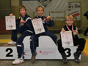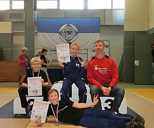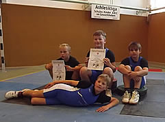 In der Guppe der Kinder B lag der Schwerpunkt in der Athletik. Hier stand ganz oben auf dem Siegertreppchen Maiko Ziebarth Gewichtsklasse bis 30kg mit 6m im Kugelschocken, 1,52m im Schlussweitsprung und 5,28 sek im 10m Wechselsprint. Tino Jahnke Gewichtsklasse bis 35kg erreichte mit der Weite von 1,56m im Schlussweitsprung und 5,75sek im Sprint Silber gefolgt von Anh Duy Tran Vu Bronze.