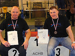 Zeitgleich startete Helmut und Thomas Hasse bei den Landesmeisterschaften im Bankdrücken in Berlin. Beide hatten sich mit Beginn des Jahres gut auf diesen Wettkampf vorbereitet. Erster Heber in der GK bis 120 kg AK 2 war Helmut Hasse. Sein Anfangsgewicht von 137kg wurde souverän bewältigt. Die weitere Steigerung auf 142kg konnten durch einen Krampf im Oberschenkel nicht Zuende gedrückt werden und zwangen auch zu einen Verzicht des dritten Versuches. Somit Silber für Sportfreund Hasse. Für Junior Thomas Hasse startend in der GK bis 93kg in der Gruppe der Aktiven war der Verlauf des Wettkampfes positiver. Seine beiden ersten Versuche mit 135 und 140 kg bewältigte Thomas sicher. Die weitere Steigerung auf 142kg erwies sich als noch zu schwer. Damit Bronze und 10kg Leistungssteigerung für Thomas. Am Ende erreichte die TSG zweimal Silber und zweimal Bronze an diesem Tag.