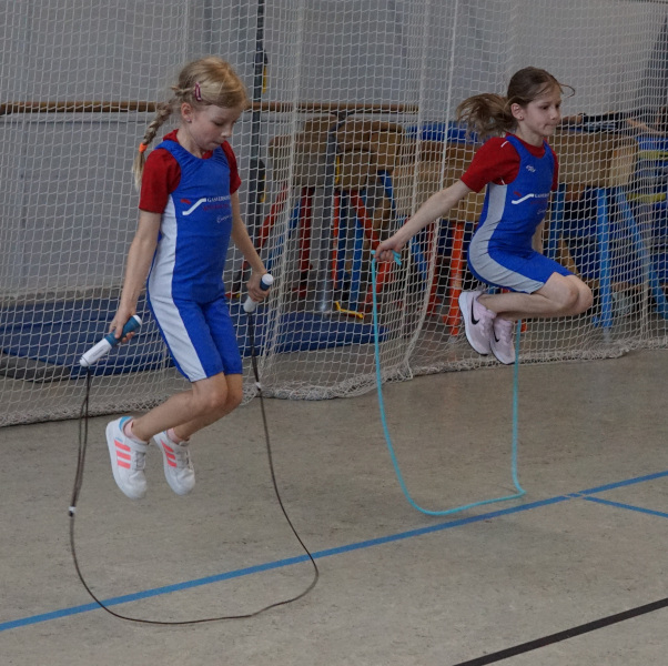 TSG Team mit zweimal Gold und einmal Silber. Gold durch bessere Technik für Sofia beim Stoßen. Joane und Sofia beim fast Synchronseilspringen.