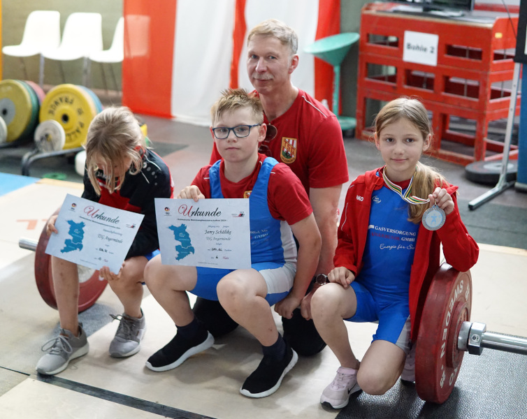 Auf Grund von Umbaumaßnahmen in der Turnhalle der Puschkinschule übernahm der TSV B/ W 65 Schwedt die Ausrichtung der 27. Kinder u. Jugendsportspiele. Die TSG Angermünde nahm mit 7 jungen Gewichthebern an der Veranstaltung teil. Der Wettkampf unterteilte sich in den olympischen Zweikampf -Reißen und Stoßen und dem Athletischen Teil bestehend aus vier Übungen. Besonderheit war erstmals die Anwendung von verschiedenen Übungen gesammelt in Pools bestehend aus drei Disziplinen. Aus diesen vier Pools wurde jeweils eine Übung ausgelost. Bester bei den jeweiligen Übungen waren hier Lennard Kempin mit 118,04 Punkten, Tom Koriath 114,12 Punkte und Jamy Schälicke 114,08 Punkte alle drei Jahrgang 2013. Aber auch Marley Walter 102,04 Punkten Jahrgang 2015 und Sofia Piperidou Jahrgang 2014 mit 101,04 Punkte konnten sich einen guten Vorsprung verschaffen. Aber auch Joane Jachmann und Neueinsteiger Leonard Wieczorkiewicz konnten gut punkten in der Athletik. Die Entscheidung viel aber im olympischen Zweikampf. Hier holte Sofia Piperidou mit Technikpunkten von 5,5 und 4,8 Punkten die Goldmedaille gefolgt von Joane Jachmann. Gold auch für Marley Walter mit verbesserten technischen Fertigkeiten an der Hantel. Tom Koriath konnte sich wohl in Leistung und Technik verbessern, erreichte aber nur Platz vier. Platz vier und fünf für Leonard und Lennard. Sehr unzufrieden mit seiner Leistung und Platz 7 war am Ende Jamy Schälicke. Trotz der Medaillenvielfalt waren Fortschritte und Verbesserungen zu erkennen und machen Mut für den nächsten Wettstreit den Athletics am 08.07.23 in Potsdam.
