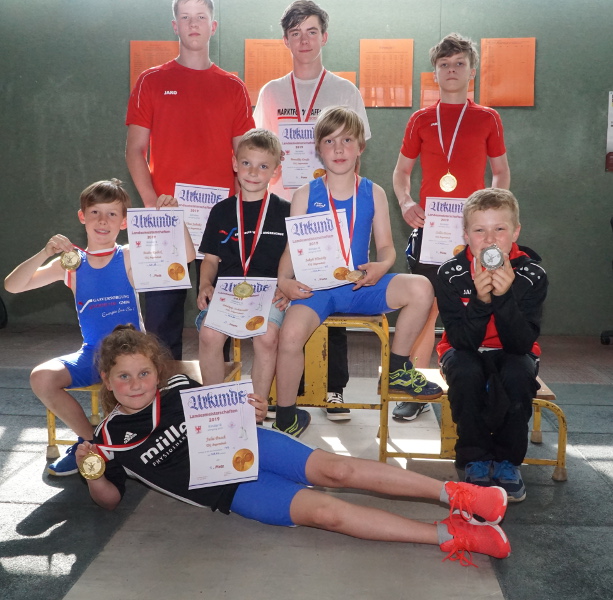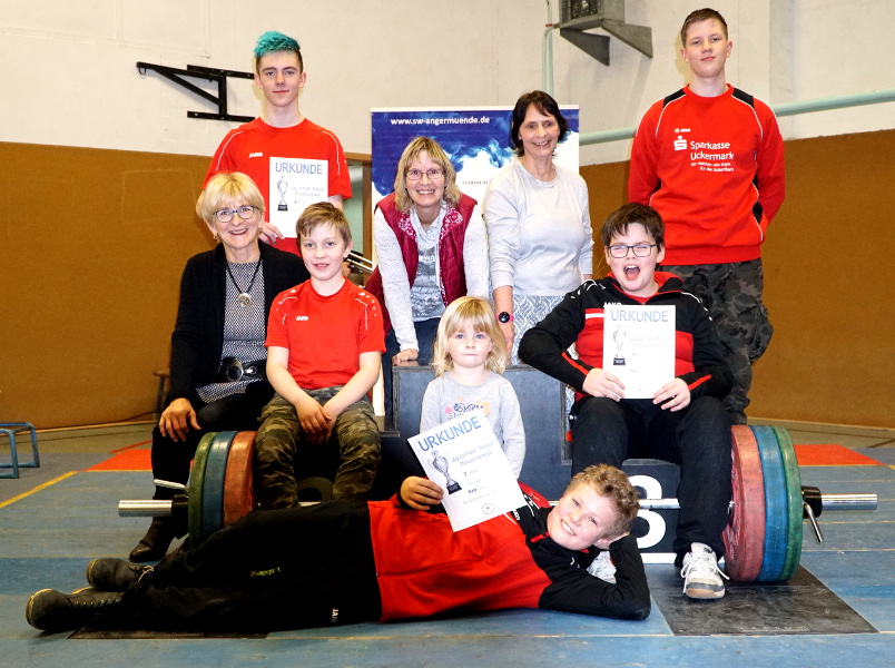 Ausrichter der Landesmeisterschaften in diesem Jahr war der ASK Frankfurt/O. Aus sieben Vereinen des Landes Brandenburgs kämpften 78 junge Heber in der Kategorie Schüler Jahrgang 2004 bis 2006 und Kinder A bis D Jahrgang 2007 bis 2014. Ausgetragen wurde die Meisterschaft im olympischen Zweikampf und der Athletik bestehend aus Schlussdreisprung, Kugelschocken, Bankdrücken und einem Hindernislauf. Nach dem Wiegen aller Teilnehmer erfolgte die Einteilung in die entsprechenden Gewichtsklassen. Die TSG, geschwächt durch krankheitsbedingte Ausfälle konnte nur mit acht Teilnehmern antreten. Trotz des geschwächten Teams zeigten alle hohen Einsatz bei allen Disziplinen. So erkämpfte Julia Busch Kinder B Gewichtsklasse bis 40kg mit noch besseren Bewegungsfertigkeiten bei 19kg im Reißen und 21kg im Stoßen Gold. Gold auch für Jakob Hönicke Gewichtsklasse bis 35kg und Malte Rudick Gewichtsklasse bis 30kg mit besserer Technik in beiden olympischen Disziplinen. Aber auch die 15 Wiederholungen im Bankdrücken und die bessere Weite im Schussdreisprung trugen zum Erfolg bei. Die vierte und fünfte Goldmedaille ging an Collin Peters und Philipp Schneider.Collin startend in der Gewichtsklasse bis 55kg scheiterte nur knapp an den 42kg im Reißen schaffte aber dagegen die 50kg im Stoßen im dritten Versuch. Jüngster Teilnehmer von Angermünde Philipp Schneider war in seinen erst zweiten Wettkampf bei der ein und anderen Disziplin noch sehr aufgeregt, konnte aber wie schon zuvor bei den Kindern B seine technischen Fertigkeiten beim Reißen verbessern. Auf dem zweiten Platz präsentierten sich Benedikt Drafz Schüler Gewichtsklasse bis 67kg und Sven Brüssow Kinder A Gewichtsklasse bis 45kg. Beide zeigten im olympischen Zweikampf die größten Verbesserungen. Mit einem undankbaren vierten Platz musste sich diesmal Routinier Tino Jahnke Schüler Gewichtsklasse bis 73kg zufrieden geben. Nach erfolgreichen Start im Reißen mit persönlicher Bestleistung von 61kg ließen die Kräfte im Stoßen dann nach. Auch in der Athletik konnten keine weiteren Punkte gut gemacht werden, somit nur der Medaillenlose Platz.