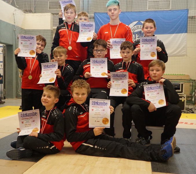 Mit einem guten Konzept zur Umsetzung der Hygienevorgaben konnte der AC Potsdam wie geplant die diesjährigen Landesmeisterschaften der Kinder in der Landeshauptstadt ausrichten. Aus sieben Vereinen reisten 52 junge Heber der Jahrgänge 2008 bis 2013 und jünger an. Für die TSG starteten Julien Tech Kruse, Sven Jabs, Jakob Hönicke, Fynn Hofmann, Felix Hoppe, Luca Siedschlag und Leon Grambauer. Alle sieben überzeugten durch ihre Ergebnisse, dass sich der Trainingsfleiß der letzten Monate gelohnt hat. So konnten Julien Tech Kruse Jahrgang 2008 mit einem Zweikampfergebnis 67kg durch 32kg im Reißen und 35kg im Stoßen ein Plus von 11kg erzielen. Teamkamerad Sven Jabs schaffte im Reißen 29kg und scheiterte nur knapp durch Nachdrücken an den 35kg im Stoßen. In der anschließende Athletik bestehend aus Schlussdreisprung, 30m Sprint, und Klimmzüge punktete Julien im Sprung mit 6,05m sowie Sprint mit 5,4sek und erreichte damit Bronze gefolgt von Sven Jabs mit Platz vier. Im Jahrgang 2009 hoben Jakob Hönicke und Fynn Hofmann. Beide kämpften zuerst in der Athletik wo sich Jakob im Schlussdreisprung verbesserte. In der ersten Teildisziplin des olympischen Zweikampfes dem Reißen war nach 18kg im ersten Versuch Schluss bei Jakob. Eine Blockade ließ die nachfolgenden Versuche nur in eine Zugbewegung enden. Konzentrierter dann die drei Stoßversuche und geschafften 24kg wofür es einen Technikwert von 5,3 und die Bronzemedaille gab. Fynn überzeugte in seinem erst zweiten Wettkampf mit guten technischen Fertigkeiten durch Werte von 5,5 und 6,0 im Reißen und Stoßen und erreichte Platz vier. Im Jahrgang 2011 stand Felix Hoppe durch eine Bestweite von 4,85m im Schlussdreisprung ganz oben auf dem Siegerpodest. Bei den jüngsten der Jahrgänge 2012 und 2013 stritten Luca Siedschlag und Neueinsteiger Leon Grambauer um die vorderen Plätze. Was bei beiden noch etwas unkonzentriert im ersten Versuch durch zu frühes ablegen der Hantel begann endete mit recht guten Technikwerten von 3,4 und 3,3 Punkten im Reißen. In der anschließenden Athletik bestehend aus Kugelschocken, Schlussweitsprung, Bauchmuskeltest und 12m Wechselsprint erzielte Luca die zweithöchste Tagesweite von 7,45m im Schocken in seinem Jahrgang und erreichte damit Silber. Aber auch Leon überzeugte in seinem ersten Wettkampf mit Silber, konnte aber noch nicht alle Leistungsreserven voll ausschöpfen. Die Wertung erfolgte in den Jahrgängen und war abhängig von der Anzahl der Startenden. So gab es bei mehr als sechs gemeldeten Hebern in jedem Jahrgang zwei Gruppen in der gewertet wurde. Neben der Einzelwertung gab es auch eine Vereinswertung die sich nach der Anzahl der Startenden aus jedem Verein richtet. Hier erreichte die TSG Platz vier hinter Schwedt, Potsdam und Frankfurt/O. In der Ermittlung der drei Punktbesten aus jedem Verein erkämpfte die TSG dank Julien Tech Kruse, Sven Jabs und Felix Hoppe den dritte Platz hinter Potsdam und Frankfurt/O.