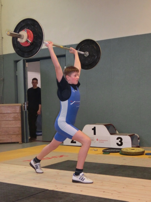 . Drei TSG Heber nahmen an diesem Event teil, um die letzten Punkte oder Kilos für die Qualifizierung zur Deutschen Meisterschaft zu schaffen. Erster an der Hantel Maiko Ziebarth startend in der Gruppe der Schüler Jahrgang 2003 Gewichtsklasse bis 45kg verfehlte nur knapp seine Zielstellung von 28kg in der ersten Teildisziplin dem Reißen, konnte aber mit besserer Technik punkten. Entschlossener dagegen der letzte Versuch Im Stoßen mit 33kg. Mit besserem Technikpunktwert in beiden Disziplinen konnten die geforderten 200 Punkte für die Qualifizierung und eine Silbermedaille erreicht werden. Teamkamerad Tino Jahnke Schüler Jahrgang 2004 Gewichtsklasse bis 62kg schaffte mit drei Versuchen 37kg. Im Stoßen war Unkonzentriertheit im letzten Versuch mit 48kg der Grund für zu ein frühes ablegen der Hantel was der Kampfrichter mit ungültig bewertete. Trotz des unglücklichen Verlaufs beim Stoßen war das Tiket für die Deutschen Meisterschaften und eine Goldmedaille im Gepäck. Stärkste Heberin an diesem Tag aus dem TSG Trio war Lara Bielke. Lara startete in Gruppe der Jugend Gewichtsklasse bis 69kg. Mit sechs gültigen Versuchen konnte eine Steigerung von 6 kg im Zweikampf und damit 102kg erreicht werden. Mit diesem guten Zweikampfergebnis wurde sie auch Landesmeisterin in dieser Gewichtsklasse.