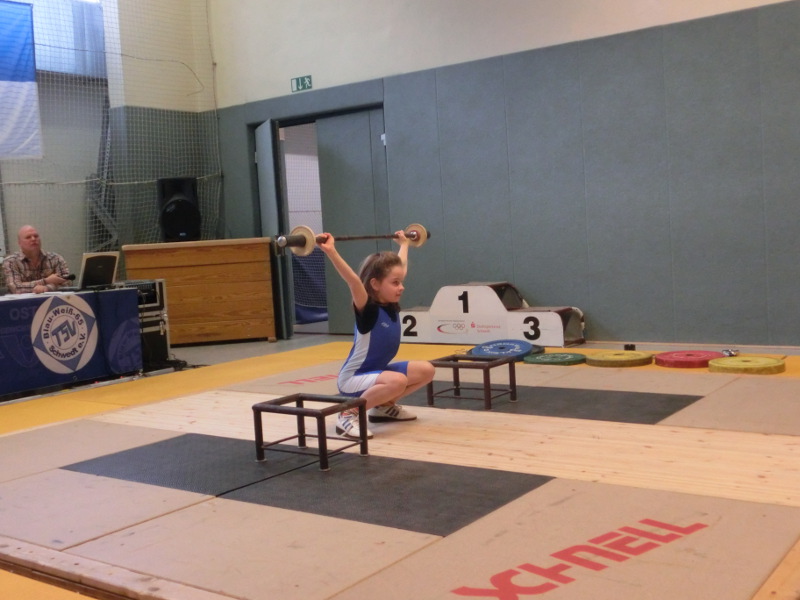 Aus ganz Deutschland reisten 78 Teilnehmer in den kleinen Ort Hostenbach nahe Saarbrücken zu den Deutschen Meisterschaften der Jugend Jahrgang 2000/ 2001. Für die TSG Angermünde bereitete sich Lara Bielke für dieses letzte Event vor den Sommerferien vor. Nach einer 11 stündigen Anreise quer durch Deutschland war am ersten Tag erst Pause angesagt. Nach einem ausgiebigen Frühstück und einem Besuch im nahegelegenen Städtchen Saarlouis wurde der Tag mit dem Wiegen und den ersten Wettkämpfen der weiblichen Teilnehmerinen fortgesetzt. Lara hob in der Gewichtsklasse bis 69kg mit weiteren fünf Sportlerinnen. Alle fünf gaben mit der Meldung ein höheres Zweikampfergebnis an was die Erfolgschancen auf eine vordere Platzierung schwinden ließ. Trotz der ungünstigen Ausgangssituation zeigte sich Lara kämpferisch in der ersten Teildisziplin Reißen. Mit drei Versuchen konnte hier neue Bestleistung mit 48kg bewältigter werden. Auch in der zweiten Disziplin dem Stoßen konnte sie die geforderten 56kg souverän umsetzten und Ausstoßen was ihr auch hier mit neuer Bestleistung im Stoßen ein Zweikampfergebnis von 104kg und Platz fünf einbrachte. Mit diesem nicht ganz zufriedenen Ergebnis aber der Erfahrung dabei gewesen zu sein kehrten Sportlerin und Trainer am nächsten Tag heim.