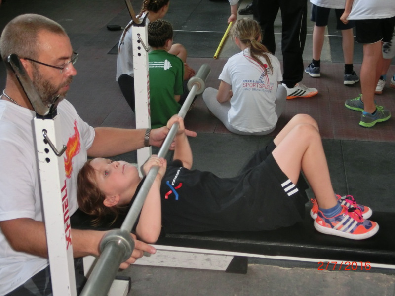 Mit dreimal Gold und Silber kehrten sechs TSG Heber von den 11. Kinder –und Jugendsportspielen des Landes Brandenburg zurück. Ausrichter der Sportspiele die durch den Landessportbund organisiert wurden war der ASK Frankfurt./O. Aus mehreren Vereinen des Landes kämpften Gewichtheber und Kraftdreikämpfer Seite an Seite in den Disziplinen Bankdrücken, Schlussweitsprung, Lauftest und dem Rückenmuskeltest. Bei den Mädchen kam anstatt des Schlussweitsprunges das Seilspringen in die Wertung. Gestritten wurde in der Sportart Gewichtheben in den Gruppen der Kinder A bis C Jahrgang 2005 bis 2008 sowie dem Kraftdreikampf in der Gruppe der Schüler Jahrgang 2003 bis 2001. Für Angermünde waren am Start Tino Jahnke, Phil Sonne, Karl Wolff, Leonie Bielke, Luna –Jolie Bielke und Julia Busch. Alle sechs hatten sich gründlich auf diesen letzten Wettstreit vor den Ferien vorbereitet. So erreichten Phil Sonne, Karl Wolff und Luna –Jolie Bielke Kinder B und C, mit verbesserten Weiten von 1,78m und 1,66m im Schlussweitsprung sowie der Anzahl von 106 Wiederholungen im Seilspringen von Luna –Jolie die Goldmedaille. Aber auch die Zeiten von 13,7 und 14,1sek im Lauftest sowie die höchste zu erreichende Anzahl von 20 Wiederholungen im Bankdrücken waren mitverantwortlich für das tolle Abschneiden. Nichr weniger Erfolgreich mit Rang 2 und damit Silber präsentierten sich Tino Jahnke, Leonie Bielke und Julia Busch. Das bewies Tino Jahnke (Kinder A) mit der Weite von 1,96m im Schlussweitsprung und der Zeit von 13,9sek im Lauftest. Leonie und Julia punkteten mit guten Ergebnisse im Seilspringen und Rückenmuskeltest. An dieser Stelle ein Dank an Thomas Koß der an diesem Tag kurzfristig für korrekte Durchführung als Kampfrichter zur Verfügung stand.