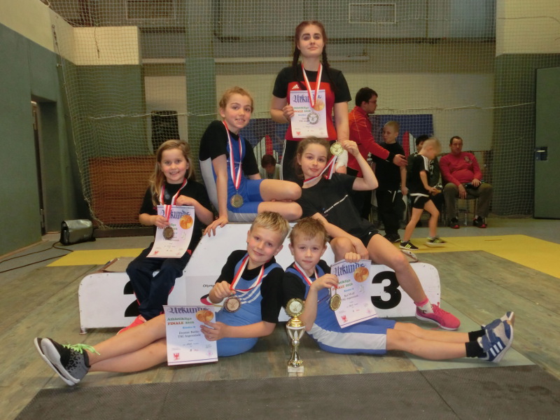 Zum letzten Kampftag in diesem Jahr trafen sich Brandenburgs Gewichtheber, um die besten in der Athletikliga zu ermitteln. Austragungsort für 44 Teilnehmer aus sieben Vereinen der Kinder A bis C sowie der Schüler Jahrgang 2009 bis 2001 war der TSV Blau Weiß 65 Schwedt. Nach der letzten Vorrunde haben sich sieben Sportler von der TSG Angermünde qualifiziert. Gekämpft wurde im olympischen Zweikampf sowie in vier athletischen Disziplinen. Erste Starterin für die TSG war Lara Bielke. Lara startend in der Gruppe der Schüler Jahrgang 2001, erreichte mit viel Kampfgeist durch sechs gültige Versuche ein Zweikampfergebnis von 90kg (Reißen 40kg/ Stoßen 50kg). Aber auch die Ergebnisse in der Athletik beim Pendellauf von 11,37sek und der Weite von 8,90m im Kugelschocken sprechen von einer hohen Qualität in der Ausführung wofür es am Ende Silber gab. Zeitgleich zum olympischen Zweikampf startete die Gruppe der Kinder A bis C in der Athletik. Hier stritten Leonie Bielke, Karl Wolff und Domenic Radtke Kinder B in den Disziplinen Schlussdreisprung, Kugelschocken, Klimmzüge, Bauchmuskeltest und der turnerischen Übung Handstand. Ganz oben auf dem Siegertreppchen mit der Tageshöchstanzahl von 15 Klimmzügen sowie der Weite von 5,21m im Schlussdreisprung stand Karl Wolff. Aber auch die technische Ausführung im Reißen mit 7,2 Punkten waren mitverantwortlich für das gute abschneiden. Teamkameradin Leonie Bielke hob hochkonzentriert und mit technischer Finesse und erreichte in der Teildisziplien Reißen nicht nur den besten Tageswert von 8,4 Technikpunkten , sondern auch die Goldmedaille. Auch Domenic Radtke verbesserte seine technischen Fertigkeiten mit der Hantel und bekam 7,7 Technikpunkte auf die Ausführung beim Reißen wofür es Bronze gab. In der jüngsten Gruppe der Kinder C Jahrgang 2008 und jünger überzeugte Luna Jolie Bielke in den Disziplinen Hindernislauf mit 13,56 sek, Kugelschocken 6,0m und der Weite von 1,58m im Schlussweitsprung und erzielte Gold. Julia Busch komplettierte den Medaillensatz mit Bronze durch Leistungssteigerungen beim 10m Wechselsprint und im Bauchmuskeltest. In der Gesamtwertung gemessen an der Anzahl der startenden Sportler und den erreichten Platzierungen verbesserte sich die TSG Angermünde gegenüber dem Vorjahr von Platz sieben auf Platz vier.
