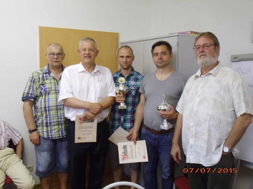 Bei Punktgleichheit musste die zweite Wertung über die Reihenfolge in der Platzierung entscheiden. In geselliger Runde erfolgte durch die Teilnehmer ein Rückblick auf die abgeschlossene Meisterschaft. Dabei bedankten sich alle Teilnehmer für die reibungslose Organisation und Durchführung bei dem Turnierleiter Dieter Klebe. Es waren sich alle Teilnehmer einig, dass es auch im Jahr 2016 eine Stadtmeisterschaft geben wird.