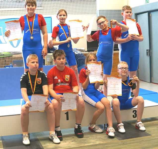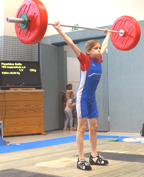 Mit 5. Medaillen im Gepäck kehrten Angermünders Gewichtheber von den 26. Kinder u. Jugendsportspielen der Uckermark zurück. Der Ausrichter TSV Blau Weiß 65 Schwedt und die TSG stellten jeweils 22 und 8 Sportlerinnen und Sportler. Gekämpft wurde im olympischen Zweikampf in den Jahrgängen 2015 bis 2012 und der Athletik bei den jüngsten. In der ersten Gruppe des Jahrgangs 2014 hoben Leonard Wieczorkiewicz, Louis Lange und Marley Walther. Den Anfang machte Louis Lange mit sechs gültigen Versuchen und geschafften 11 und 14kg in den beiden Teildisziplinen Reißen und Stoßen wofür es Bronze gab. Leonard Wieczorkiewicz folgte mit guter Zweikampfleistung von 19 und 23kg und erhielt dafür Platz vier. Ein starkes Kopf an Kopf Rennen gab es zwischen den beiden Jahrgängen 2015 und 2014. Mit nur 0,45 Punkten mehr setzte sich der Schwedter Nick Krause mit Gold gegen Marley Walther Silber durch. Marley, erreichte mit besserer Technik ein Zweikampfergebnis von 41kg. In der nachfolgenden Gruppe hoben Sofia Piperidou und Lillie Pioch. Auch hier entschied die bessere Technik über die Platzierung. Stolz präsentierte Sofia ihre Goldmedaille auf dem Siegerpodest. Lillie Pioch schaffte trotz besserem Zweikampfergebnis nur Platz vier. In der dritten Gruppe stritten Tom Koriath und Jamy Schälicke um Platz 2 und 3. Am Ende konnte Tom mit 0,69 Punkte mehr die Rangfolge festlegen. Neueinsteiger Mitch Friedland komplettierte das Team und erreichte in seinem ersten Wettkampf Platz vier. Nach diesem hervorragende Abschneiden enden die Wettkämpfe vor den Sommerferien im olympischen Zweikampf. Der letzte Wettstreit sind die Kinder und Jugendsportspiele des Landes.