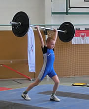 Zum letzeten Ligawettkampf im Gewichtheben trafen sich Sportler der Staffel Nord und Süd in Schwedt und Frankfurt/ O. Denn nur wer an den beiden Vorrunden teilgenommen hat und unter die ersten Zehn kommt nimmt an der Finalrunde teil. Eine große Herausforderung für drei Angermünder die in den letzten Wochen fleißig auf diesen Wettkampf hingearbeitet haben. Gekämpft wurde wiederum im olympischen Zweikampf sowie in der Athletik. Hier erreichten Maiko Ziebarth (Kinder A) in den Disziplinen Schlussdreisprung und Kugelschocken Weiten von 5,25m und 5,55m. Aber auch die Zeit von 13,6 sek im Lauftest sowie 15 Wiederholungen im Bankziehen waren eine gute Grundlage für eine vordere Platzierung. Leider änderte sich das beim Reißen und Stoßen. Was hoffnungsvoll mit 15kg im ersten Versuch beim Reißen begann, endete mit zwei Ungültigen mit 17 kg. Ähnlicher Verlauf beim Stoßen. Trotz drei gültiger Versuche war die technische Ausführung mehr als Mangelhaft was letztlich nur den zweiten Platz einbrachte. In besserer Tagesform zeigte sich Tino Jahnke startend in der Gruppe der Kinder B. Seine Ergebnisse spiegelten eine bessere Konzentration wieder. So konnten im Kugelschocken 7,20m und im Schlussdreisprung 5,29m erreicht werden. Aber auch der Bestwert von 6,0 Technikpunkten mit 13kg im Reißen waren ausschlaggebend für den zweiten Rang.