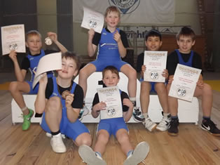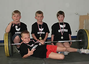 In der Guppe der Kinder B lag der Schwerpunkt in der Athletik. Hier stand ganz oben auf dem Siegertreppchen Maiko Ziebarth Gewichtsklasse bis 30kg mit 6m im Kugelschocken, 1,52m im Schlussweitsprung und 5,28 sek im 10m Wechselsprint. Tino Jahnke Gewichtsklasse bis 35kg erreichte mit der Weite von 1,56m im Schlussweitsprung und 5,75sek im Sprint Silber gefolgt von Anh Duy Tran Vu Bronze.