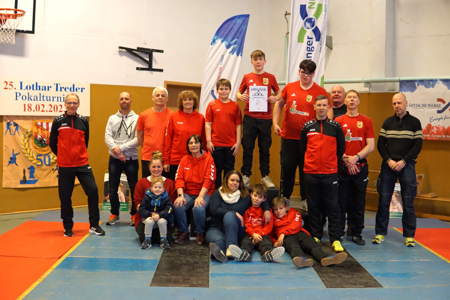 Nach zweijähriger Pause führte die TSG Angermünde Abteilung Gewichtheben ihr traditionelles Lothar Treder Pokalturnier durch. Der Einladung folgten 41 Teilnehmer aus sechs Vereinen des Landes Brandenburgs. Ausgetragen wurde der Wettkampf im olympischen Zweikampf dem Reißen und Stoßen. Für die TSG starteten Jakob Hönicke, Felix Hoppe und Luca Siedschlag. Den Anfang in der Altersklasse 2011 machte Felix Hoppe mit einer Leistung von 22kg im Reißen und 24kg im Stoßen wofür er Platz 6 erreichte. Luca Siedschlag AK 2012 zeigte sich an diesem Tag nicht in Bestform und schaffte mit nur einem Versuch im Reißen 23kg und 31kg im Stoßen Platz 7. Dritter Heber für Angermünde Jakob Hönicke AK 2009 startete nach zweijähriger Pause ein Comeback und schaffte mit 29kg im Reißen und 32kg im Stoßen Platz 9. Neben der Einzelwertung gab es auch eine Mannschaftswertung. Eine Mannschaft bestand aus vier Sportlerinnen oder Sportler. Der diesjährige Sieger in dieser Kategorie war der TSV Blau Weiß 65 Schwedt mit 870,88 Punkten gefolgt vom AC Potsdam mit 743,11 Punkten und dem 2020 Sieger ASK Frankfurt mit 742,95 Punkten. Im kommenden Jahr wird dieser Pokal der als Wanderpokal ausgeschrieben ist noch mal verteidigt und bleibt dann beim Sieger. An dieser Stelle einen großen Dank an das Blumenhaus Theiß für die tolle Dekoration und der Fleischerei Mai für die leckere Bewirtung aber auch allen Helfern die an diesem Tag für einen reibungslosen Ablauf sorgten.
