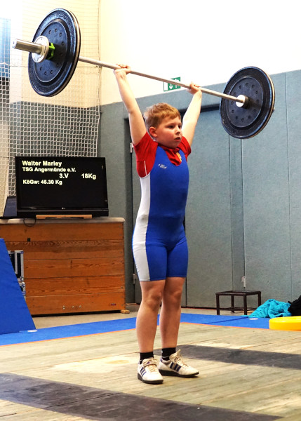 Mit 5. Medaillen im Gepäck kehrten Angermünders Gewichtheber von den 26. Kinder u. Jugendsportspielen der Uckermark zurück. Der Ausrichter TSV Blau Weiß 65 Schwedt und die TSG stellten jeweils 22 und 8 Sportlerinnen und Sportler. Gekämpft wurde im olympischen Zweikampf in den Jahrgängen 2015 bis 2012 und der Athletik bei den jüngsten. In der ersten Gruppe des Jahrgangs 2014 hoben Leonard Wieczorkiewicz, Louis Lange und Marley Walther. Den Anfang machte Louis Lange mit sechs gültigen Versuchen und geschafften 11 und 14kg in den beiden Teildisziplinen Reißen und Stoßen wofür es Bronze gab. Leonard Wieczorkiewicz folgte mit guter Zweikampfleistung von 19 und 23kg und erhielt dafür Platz vier. Ein starkes Kopf an Kopf Rennen gab es zwischen den beiden Jahrgängen 2015 und 2014. Mit nur 0,45 Punkten mehr setzte sich der Schwedter Nick Krause mit Gold gegen Marley Walther Silber durch. Marley, erreichte mit besserer Technik ein Zweikampfergebnis von 41kg. In der nachfolgenden Gruppe hoben Sofia Piperidou und Lillie Pioch. Auch hier entschied die bessere Technik über die Platzierung. Stolz präsentierte Sofia ihre Goldmedaille auf dem Siegerpodest. Lillie Pioch schaffte trotz besserem Zweikampfergebnis nur Platz vier. In der dritten Gruppe stritten Tom Koriath und Jamy Schälicke um Platz 2 und 3. Am Ende konnte Tom mit 0,69 Punkte mehr die Rangfolge festlegen. Neueinsteiger Mitch Friedland komplettierte das Team und erreichte in seinem ersten Wettkampf Platz vier. Nach diesem hervorragende Abschneiden enden die Wettkämpfe vor den Sommerferien im olympischen Zweikampf. Der letzte Wettstreit sind die Kinder und Jugendsportspiele des Landes.