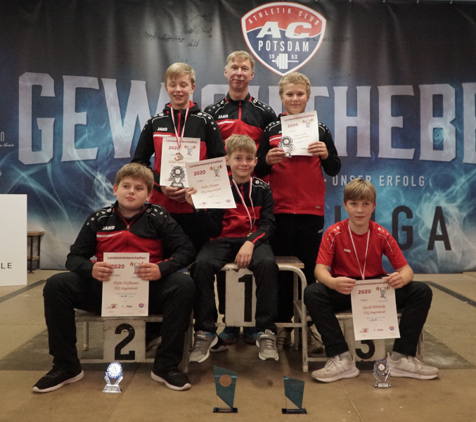 Ausrichter der Landesmeisterschaften in diesem Jahr war der ASK Frankfurt/O. Aus sieben Vereinen des Landes Brandenburgs kämpften 78 junge Heber in der Kategorie Schüler Jahrgang 2004 bis 2006 und Kinder A bis D Jahrgang 2007 bis 2014. Ausgetragen wurde die Meisterschaft im olympischen Zweikampf und der Athletik bestehend aus Schlussdreisprung, Kugelschocken, Bankdrücken und einem Hindernislauf. Nach dem Wiegen aller Teilnehmer erfolgte die Einteilung in die entsprechenden Gewichtsklassen. Die TSG, geschwächt durch krankheitsbedingte Ausfälle konnte nur mit acht Teilnehmern antreten. Trotz des geschwächten Teams zeigten alle hohen Einsatz bei allen Disziplinen. So erkämpfte Julia Busch Kinder B Gewichtsklasse bis 40kg mit noch besseren Bewegungsfertigkeiten bei 19kg im Reißen und 21kg im Stoßen Gold. Gold auch für Jakob Hönicke Gewichtsklasse bis 35kg und Malte Rudick Gewichtsklasse bis 30kg mit besserer Technik in beiden olympischen Disziplinen. Aber auch die 15 Wiederholungen im Bankdrücken und die bessere Weite im Schussdreisprung trugen zum Erfolg bei. Die vierte und fünfte Goldmedaille ging an Collin Peters und Philipp Schneider.Collin startend in der Gewichtsklasse bis 55kg scheiterte nur knapp an den 42kg im Reißen schaffte aber dagegen die 50kg im Stoßen im dritten Versuch. Jüngster Teilnehmer von Angermünde Philipp Schneider war in seinen erst zweiten Wettkampf bei der ein und anderen Disziplin noch sehr aufgeregt, konnte aber wie schon zuvor bei den Kindern B seine technischen Fertigkeiten beim Reißen verbessern. Auf dem zweiten Platz präsentierten sich Benedikt Drafz Schüler Gewichtsklasse bis 67kg und Sven Brüssow Kinder A Gewichtsklasse bis 45kg. Beide zeigten im olympischen Zweikampf die größten Verbesserungen. Mit einem undankbaren vierten Platz musste sich diesmal Routinier Tino Jahnke Schüler Gewichtsklasse bis 73kg zufrieden geben. Nach erfolgreichen Start im Reißen mit persönlicher Bestleistung von 61kg ließen die Kräfte im Stoßen dann nach. Auch in der Athletik konnten keine weiteren Punkte gut gemacht werden, somit nur der Medaillenlose Platz.
