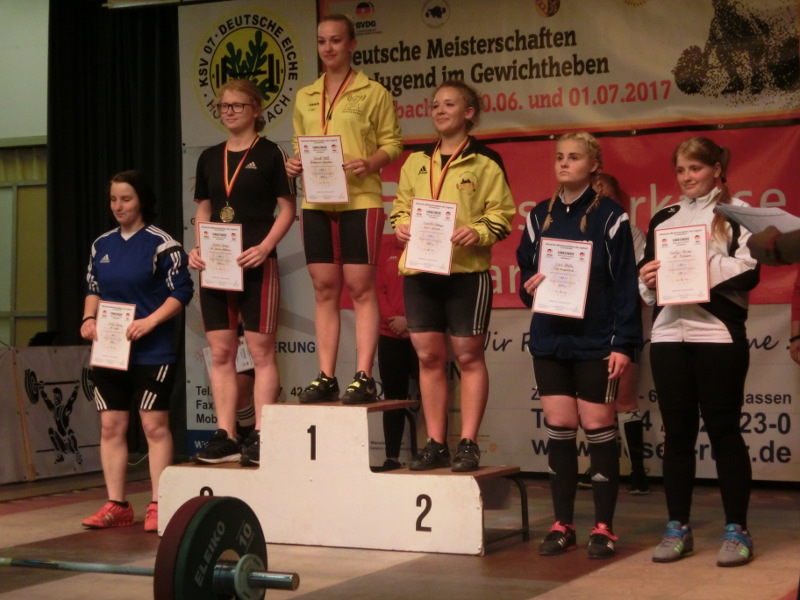 Aus ganz Deutschland reisten 78 Teilnehmer in den kleinen Ort Hostenbach nahe Saarbrücken zu den Deutschen Meisterschaften der Jugend Jahrgang 2000/ 2001. Für die TSG Angermünde bereitete sich Lara Bielke für dieses letzte Event vor den Sommerferien vor. Nach einer 11 stündigen Anreise quer durch Deutschland war am ersten Tag erst Pause angesagt. Nach einem ausgiebigen Frühstück und einem Besuch im nahegelegenen Städtchen Saarlouis wurde der Tag mit dem Wiegen und den ersten Wettkämpfen der weiblichen Teilnehmerinen fortgesetzt. Lara hob in der Gewichtsklasse bis 69kg mit weiteren fünf Sportlerinnen. Alle fünf gaben mit der Meldung ein höheres Zweikampfergebnis an was die Erfolgschancen auf eine vordere Platzierung schwinden ließ. Trotz der ungünstigen Ausgangssituation zeigte sich Lara kämpferisch in der ersten Teildisziplin Reißen. Mit drei Versuchen konnte hier neue Bestleistung mit 48kg bewältigter werden. Auch in der zweiten Disziplin dem Stoßen konnte sie die geforderten 56kg souverän umsetzten und Ausstoßen was ihr auch hier mit neuer Bestleistung im Stoßen ein Zweikampfergebnis von 104kg und Platz fünf einbrachte. Mit diesem nicht ganz zufriedenen Ergebnis aber der Erfahrung dabei gewesen zu sein kehrten Sportlerin und Trainer am nächsten Tag heim.