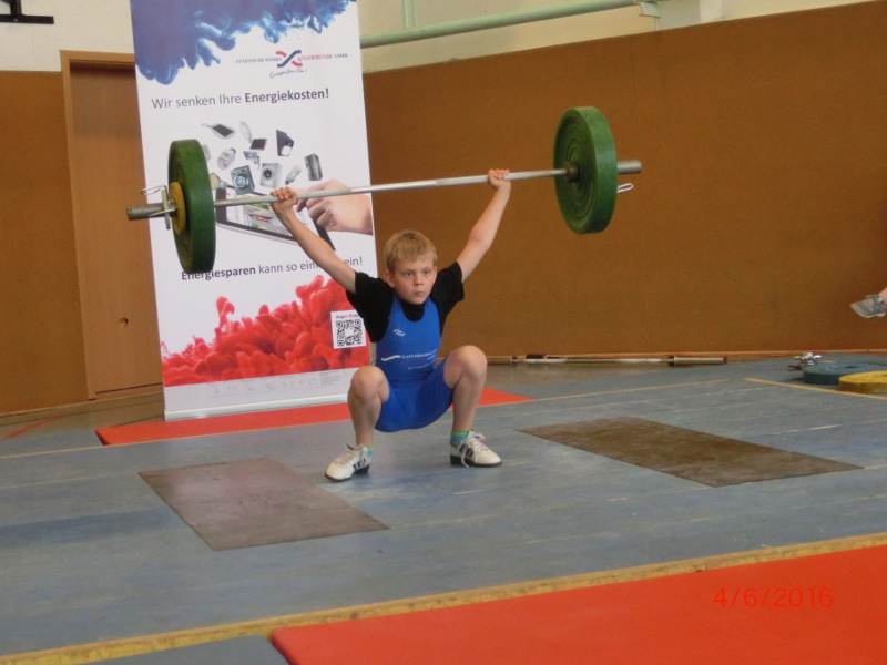 Im Rahmen der 21. Kinder - und Jugendspiele war der TSV Blau- Weiß 65 Schwedt Ausrichter der Wettkämpfe in der Sportart Gewichtheben. Aus drei Vereinen der Uckermark und Barnim kämpften 35 Sportler aus der Gruppe der Kinder A bis C, Schüler Jahrgang 2000 bis 2002 und der Jugend Ü 16/17 um das begehrte Edelmetall. Die TSG nahm mit gleicher Besetzung wie schon bei den Landesmeisterschaften teil. So steigerte Maiko Ziebarth Gewichtsklasse bis 35kg seine Leistung im Reißen auf 21kg und erreichte mit 28kg im Stoßen Gold. Wie schon sein Teamkamerad verbesserte auch Tino Jahnke Gewichtsklasse bis 45kg seine persönliche Bestleistung im Reißendurch 22kg. Im Stoßen reichte die Kraft für eine Steigerung diesmal nicht, somit nur Silber. In der Gruppe der Kinder B wurde zuerst in der Athletik in den Disziplinen Kugelschocken, Schlussweitsprung und 10m Wechselsprint gestritten. Ganz oben auf dem Siegertreppchen Phil Sonne GK bis 35kg mit der Weite von 6,65m im Kugelschocken, 5,2sek im Wechsellauf und 14kg im Reißen. Nevio Nittmann startend in gleicher Gewichtsklasse zeigte sich in seinem zweiten Wettkampf konzentrierter und schaffte mit besserer Technik im Reißen Silber. Jüngster Heber Karl Wolff Kinder C Gewichtsklasse bis 25kg verbesserte sich neben den drei athletischen Übungen hauptsächlich im Bauchmuskeltest durch 26 Wiederholungen und bekam Gold.