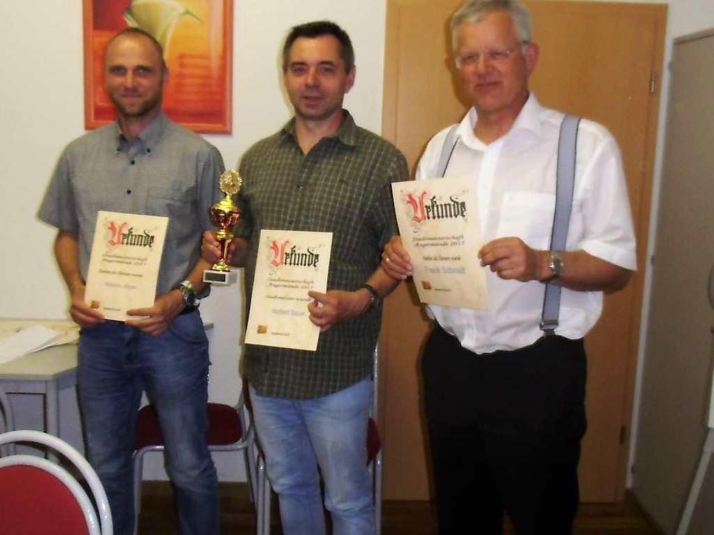 Bei der Bekanntgabe der Ausschreibung hat keiner daran gedacht, dass es zum Abschluss des Turnieres zwei Spieler mit der exakt gleichen Punktzahl und der exakt gleichen zweiten Wertung geben wird. Somit wurde von Seiten der Turnierleitung entschieden, dass erstmalig zwei Spieler den Titel eines Stadtmeisters erhalten.
